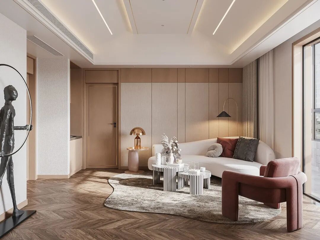 空间整体色彩或家具搭配采用中性暖色为主,营造出舒适的空间氛围,暖色系的使用增加空间的温度,也能整理家居使用者的心情。