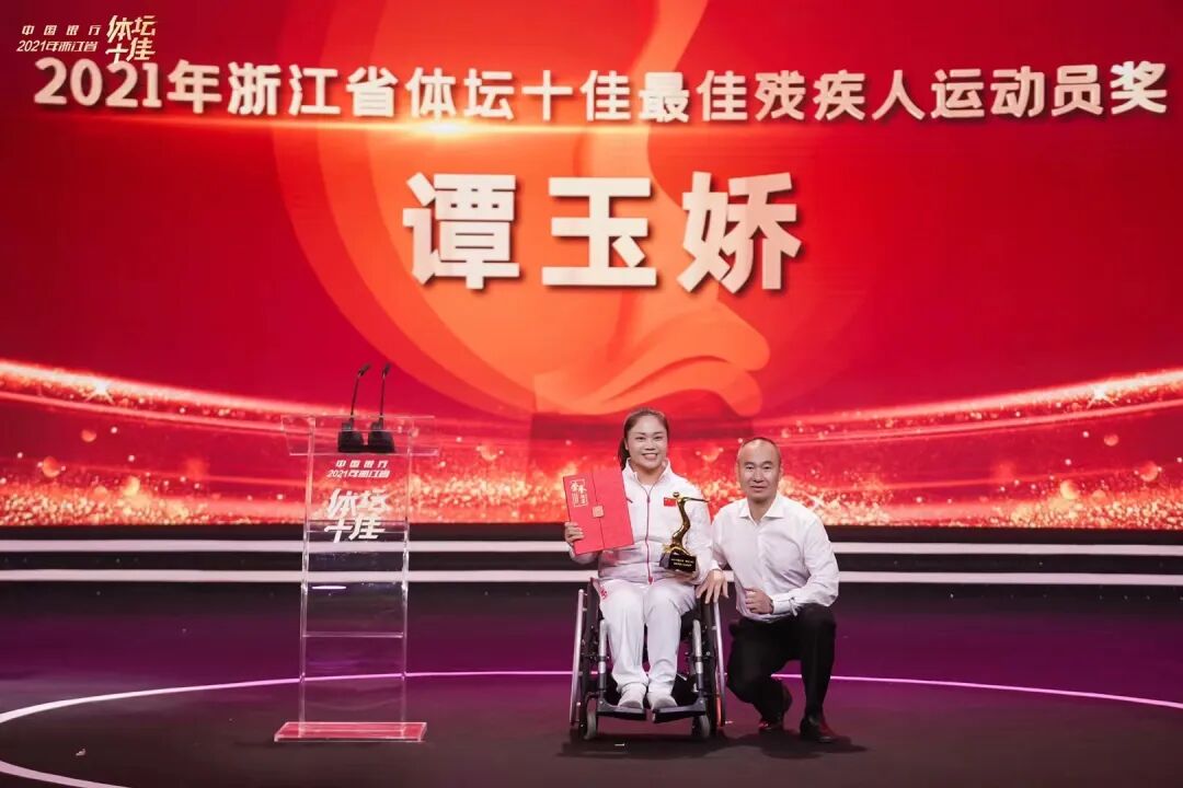 为残奥会举重冠军谭玉娇颁发“最佳残疾人运动员”奖