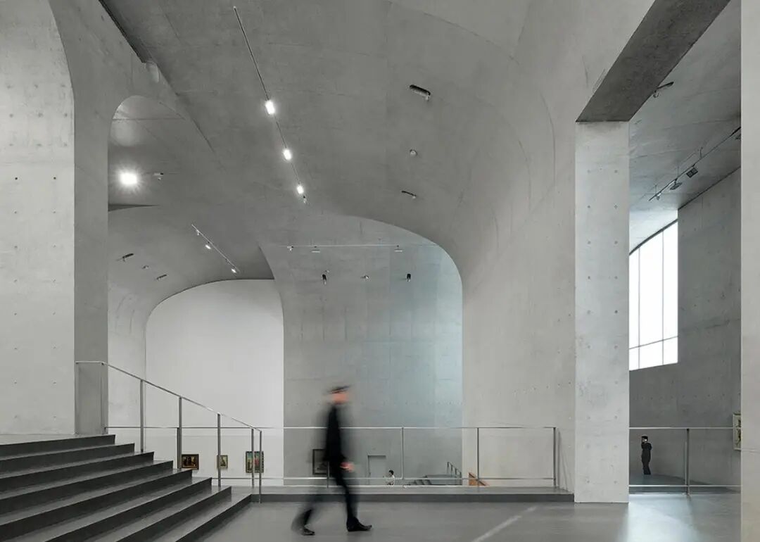 “伞拱”全部用清水混凝土塑造,让建筑内部空间呈现出一种朴素的、原始的野性魅力。