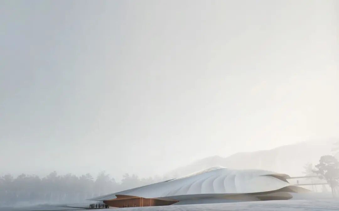 由MAD设计的亚布力企业家论坛永久会址,获得了2021 Dezeen Awards最佳文化建筑奖。建筑银白色的屋顶幕墙呼应着雪山环境,宛如雪山脚下的一顶大帐篷。