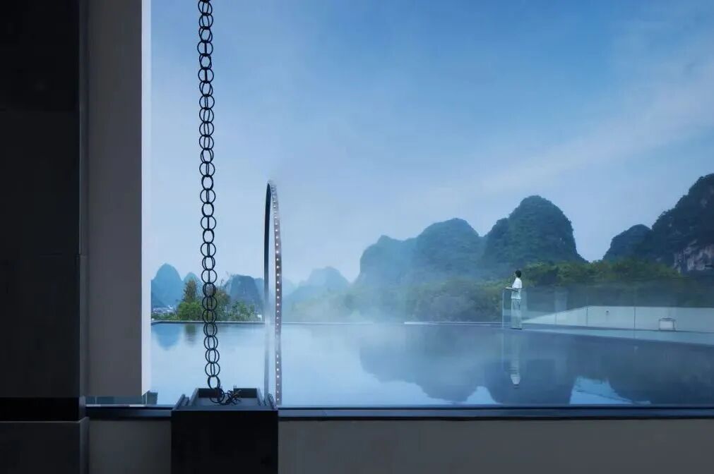 这间于今年新开的酒店,真的是一经开业就惊艳了整个阳朔乃至整个广西酒店圈。玖壤坐落于阳朔的制高点,拥有极为开阔的视野,可以将整个阳朔的城市尽收眼底。而20元纸币取景地的漓江更是近在咫尺。