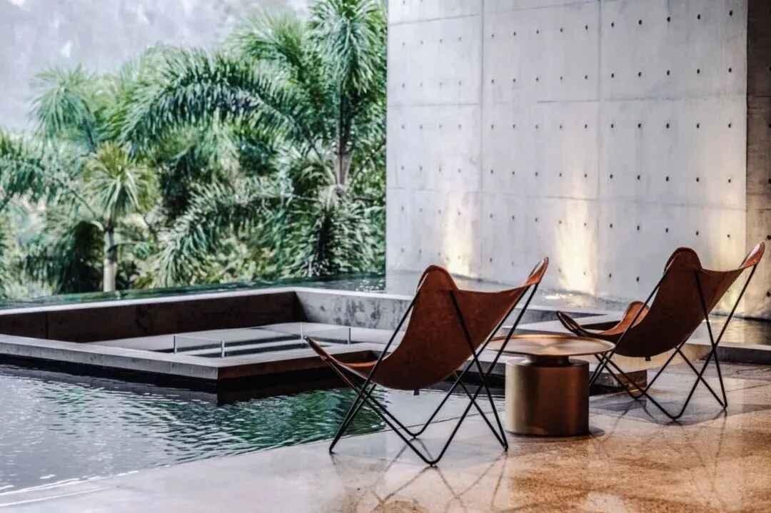 酒店没有单间客房,93套临江而建的别墅,110平米起跳,目之所及皆是绿。