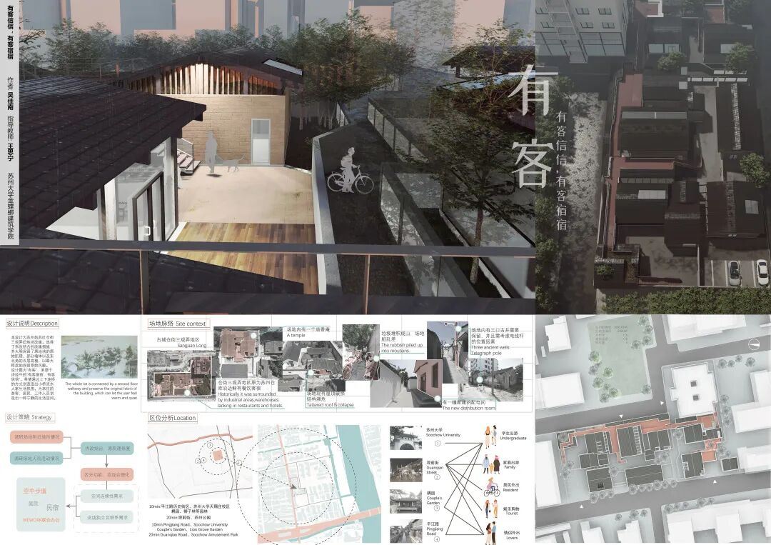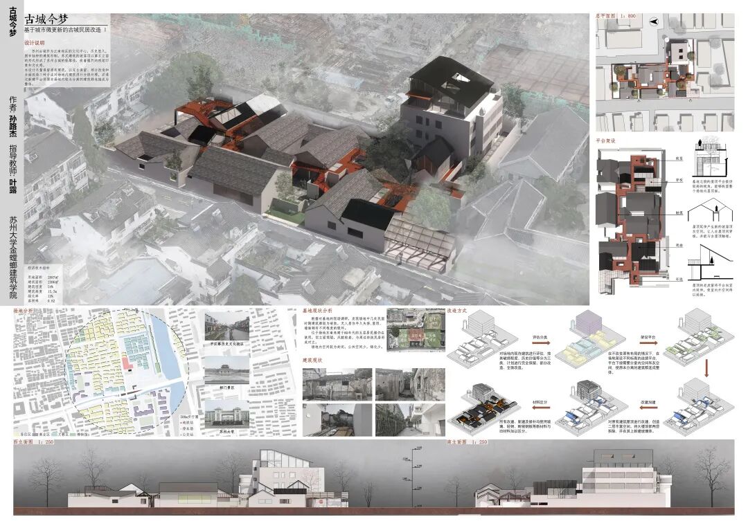 本次联合设计以“古城更新”为主题,设计内容围绕位于苏州市平江历史文化街区保护范围内的姑苏区仓街三管弄地块的建筑改建展开,同时结合三管弄地块的历史文化,目的是希望让学生们的设计能够充分体现这个地块的历史和更新之间紧密的结合,让古城重新焕发生机与活力,讲述具有新时代特色的历史故事。