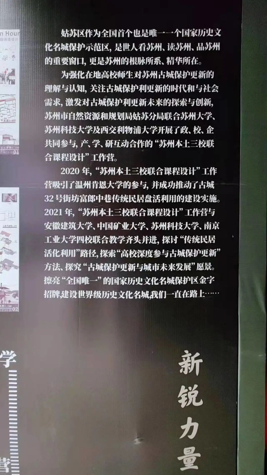 2021年12月6日,苏州市资规局姑苏分局联合苏州大学、苏州科技大学和西交利物浦大学开展的联合设计营“三管弄古城地块更新”展览在苏州设计周展出。