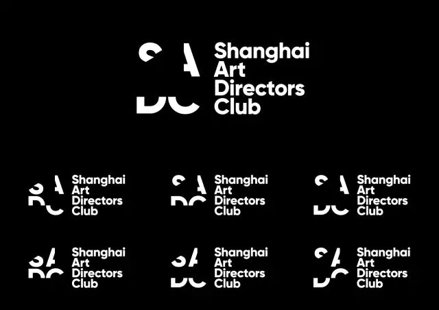 作品說明 Description:上海艺术指导俱乐部的英文缩写是SADC。我们根据这四个字母的对称性特征,将其裁切掉一半,但仍保持其识别性。将半个字母进行不同的组合搭配得到了一系列标志。这样的处理方式也应用在空间中的导视图标上。多形态、变化的标志体现了SADC的创新性和包容性。