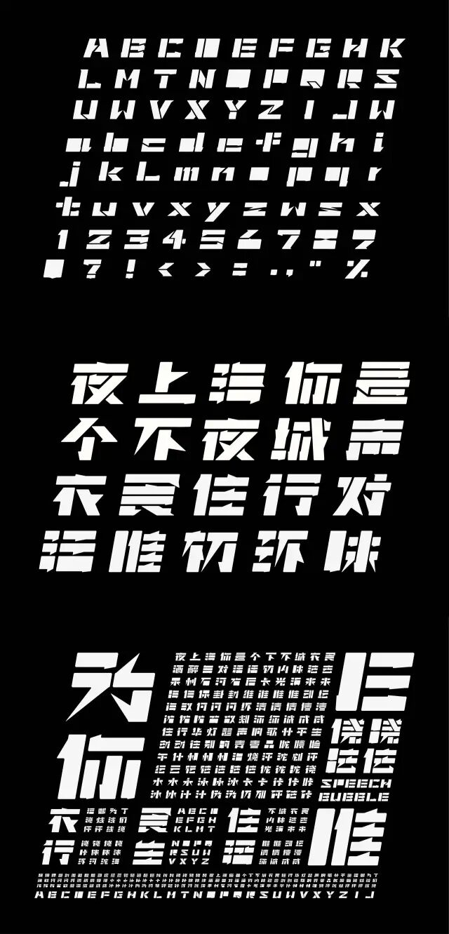 作品說明 Description:对话框是漫画最常见的元素,用以交代人物的思想。同样,字型在文字这媒介之中扮演抒发情感的角色。对话框与字型,其实如出一辙,因此借用对话框的型态,重新建构字母和中文字体的字型,根据笔画方向,将其简化成几何形状,保留文字的可读性。
