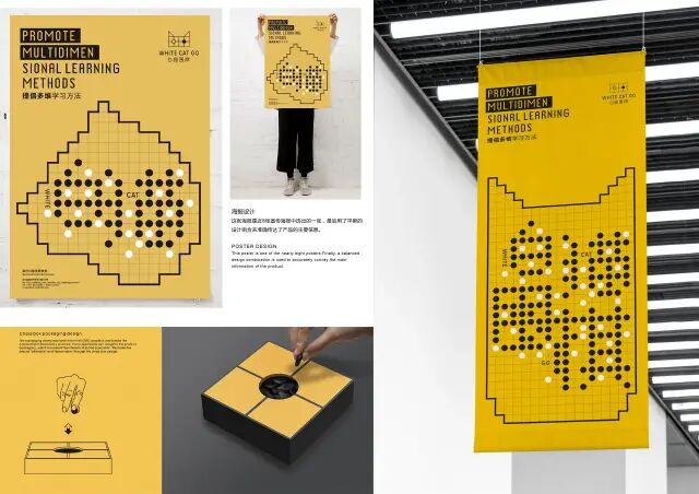 作品說明 Description:标志以白猫的图形为设计主体,造型中巧妙地融入了“围棋、棋格、棋子”等元素。标志引入了邓小平的一句名言:“不管白猫黑猫,只要捉住老鼠就是好猫“,表达了白猫围棋对教育以多维学习方法为目的。
