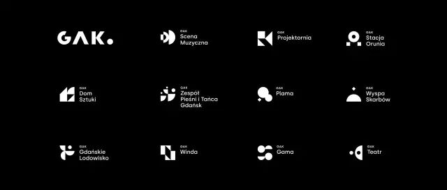 作品說明 Description:Gdansk Archipelago of Culture (GAK) is a local-government cultural institution, founded in 1967 in the City of Gdansk. From the beginning it conducts extensive artistic and educational activities. Today, GAK in its structure collects 11 intermediate institutions, located in various different districts in the city. Our task was to prepare the process of rebranding of the whole institutional structure which was based on two – stage strategic workshops with management board. The main logo GAK was based on simple and strong logotype which properly positioning GAK as the superior institution. To distinguish lower position in the branding of the GAK organisation, all logos of subordinate institutions were based on the same construction scheme. Simple logotype was supported by simple graphical forms (signets) referencing to specialisation of the specific institution. Thanks to that, we got a full and homogeneous visual branding system including the main brand and all subsidiary logos.
