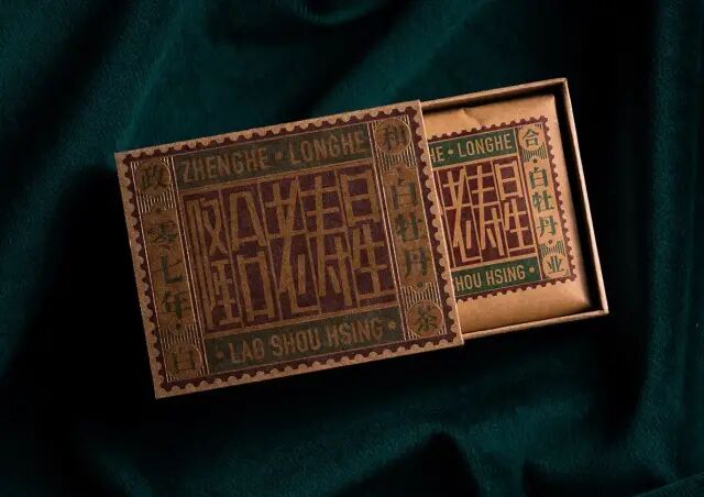 作品說明 Description:隆合茶业旗下老茶博物馆,存放着主理人杨丰诸多珍藏的老样罐。 老白茶醇柔而暖、温润而泽,心无烦忧寿自高,正如历经岁月的长者一般。包装整体打造民国气息,字体、色彩结合隆合特有的“邮票”元素,承载一贯的品牌调性,抽拉盒型加之牛皮纸质感,呈现稳重古朴的气质。