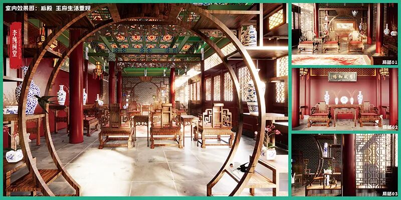 创作说明:我们的主题是故园寻迹,文脉延涵,在王府中寻找旧时痕迹,并从现代角度和技术进行室内外景观的改造创新。