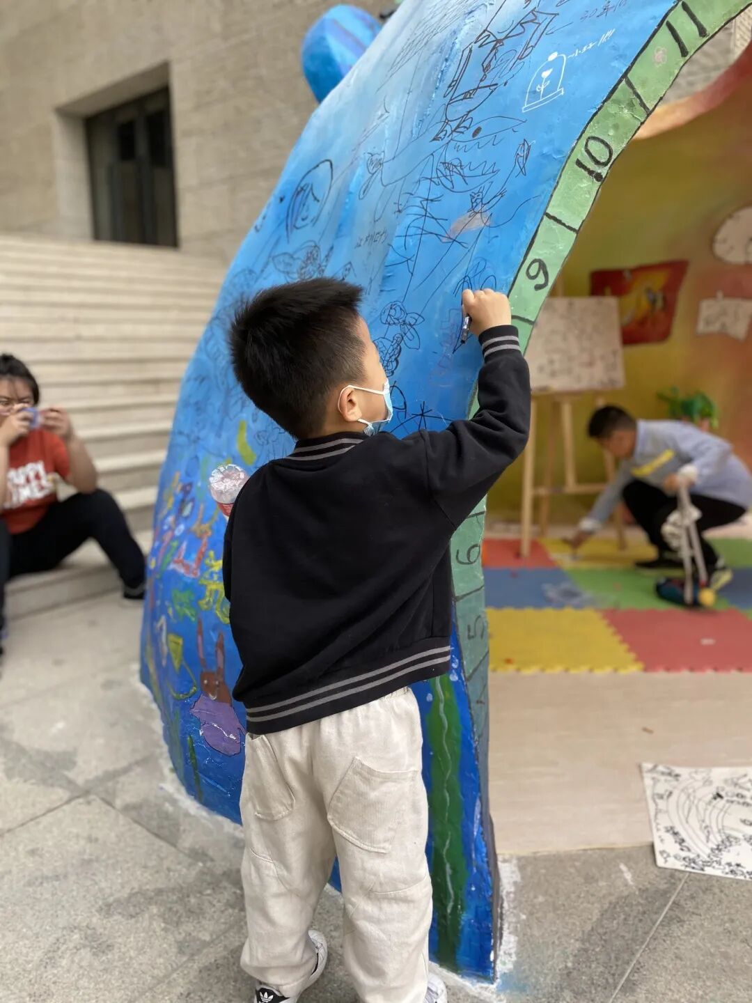 创作说明:设计灵感来源于我妹妹的一张画,她画出了5岁时眼中看到了不一样的世界,让我想到了我的童年,我试着将它与公共艺术相结合,让更多人感受到童真的乐趣,引发共鸣。作品与社会紧密结合,装置表面绘画作品由孩子们共同完成,唤醒大众对孩子们的思维与艺术表达方式的关注。