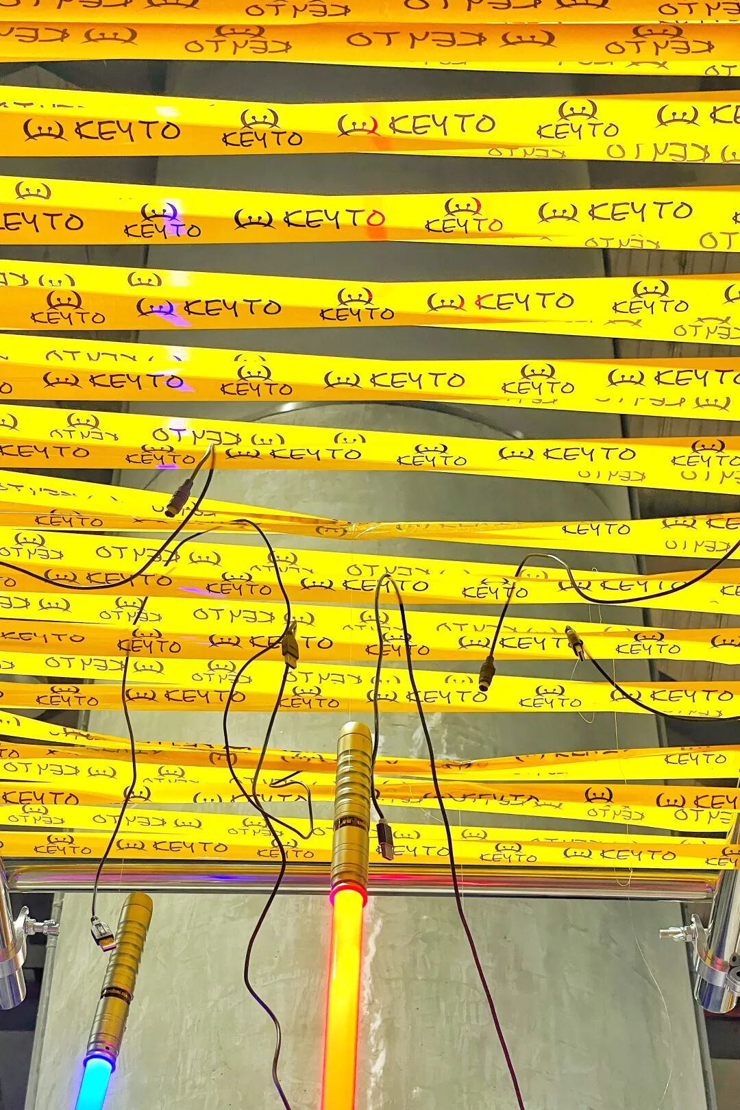 同时,考虑到现场可能没有电源,我们凑了一个星球大战的光件,它和主题的关联不是很大,但让装置稍微有一些灯光的渲染,整体上来说,这个装置呈现了我们想表达的。”