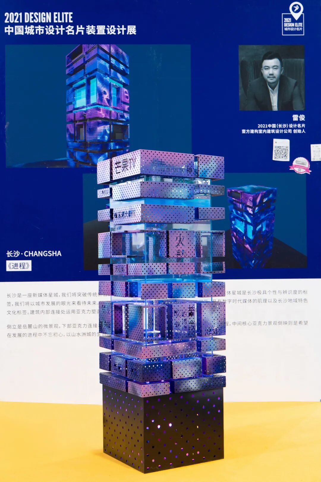 长沙的浏阳河以及湘江的母亲河是串联长沙的丝带,我们所有的思路就是用这样一根彩带附上了时尚的颜色,将我们的人文、城市以及湘江的水进行我们科技化的串联,也就是我的整个的设计思路。城市设计名片装置带给我启发的思考,长沙的城市IP,从吃方面来入手,是从臭豆腐变成了茶颜悦色,从街边的老餐馆变成了现在的文和友,我们到底用一种什么样的眼光来看待这座城市的未来呢?所以我赋予了它三个字,趣、潮和友,这是我眼中的长沙。”