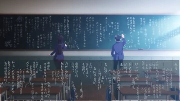 这个作品实际是一部氛围轻松的番剧,但每次看见女主角的社恐发作说不清话的时候,总会想到当下时代的现状。社恐的古见同学的正常交流主要依靠写字,不就很像现代人只有在网络线上才能自如聊天吗?