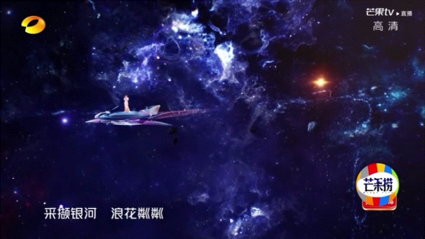 《摘星》节目在“苍穹之光”舞台打造以浩瀚宇宙为主的虚拟现实场景,歌颂三十余载中国航天梦想与伟大成就。
