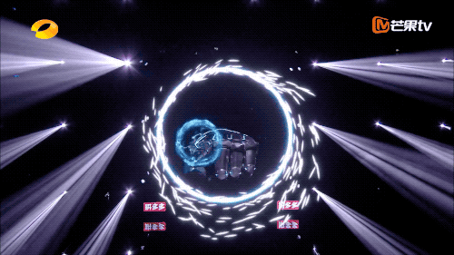 在五首串烧歌曲的过度中用AR虚拟技术做为串场,将五首歌之间用故事连接,让五首歌之间产生联系,结构更加完整。每一位演绎者在歌曲开场中都有一把三角钥匙,开启舞台。每一个歌曲结束时空间中分别用立体正方形、长方形、三角形、六边形的结构装置元素,通过激光的配合将钥匙传递到下一演绎着的手中。