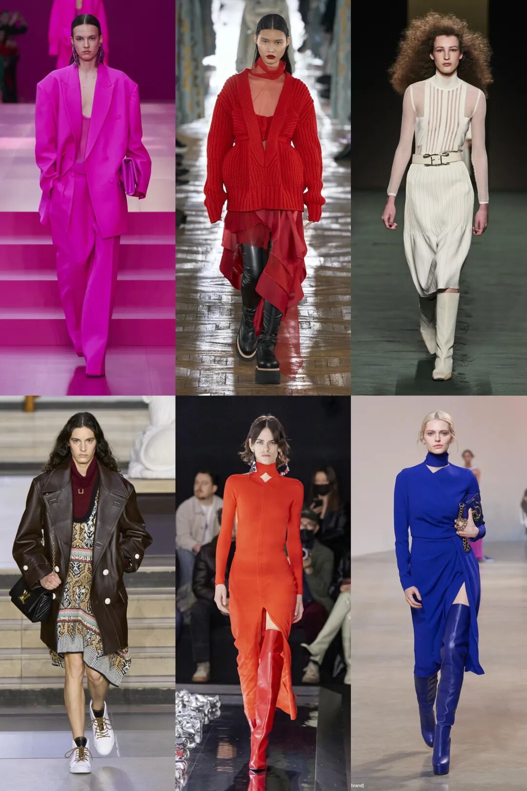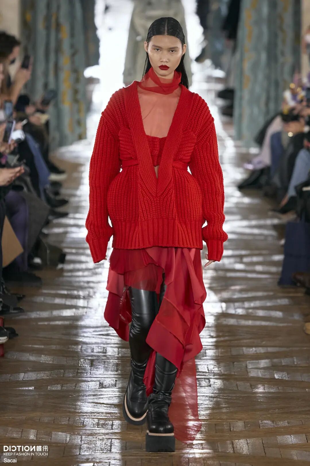 红色是2022/23秋冬时装周中各品牌不约而同选择的惊喜色彩,以往正红色系并不常作为流行的重点,也许正因如此红色系设计拥有更多新鲜感,设计师尝试将一种利落洒脱的性格用这种张扬的色彩展现出来,夺目而锐利。