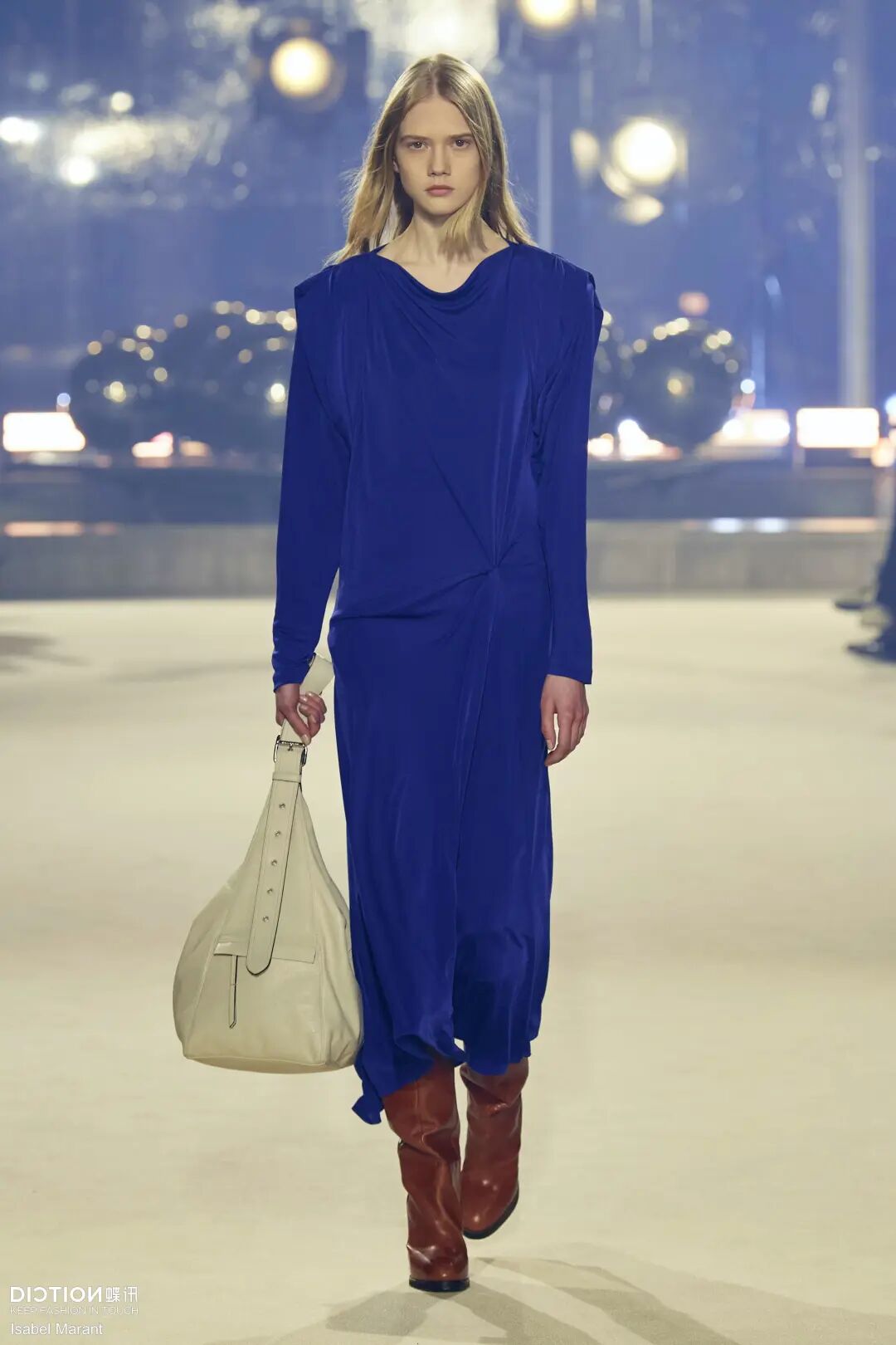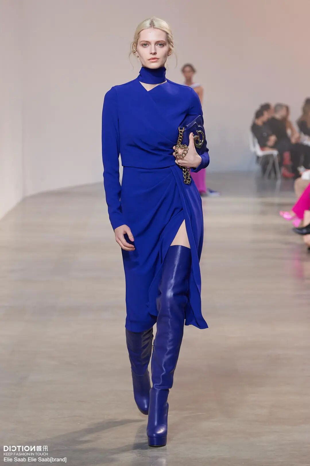 2022/23秋冬巴黎时装周上出现了深海浪蓝色的身影,它在之前的流行周期中俘获了相当一部分穿着者的心,宝石般的丰润优雅的色彩在沉闷冬季中带来清新的透明感。