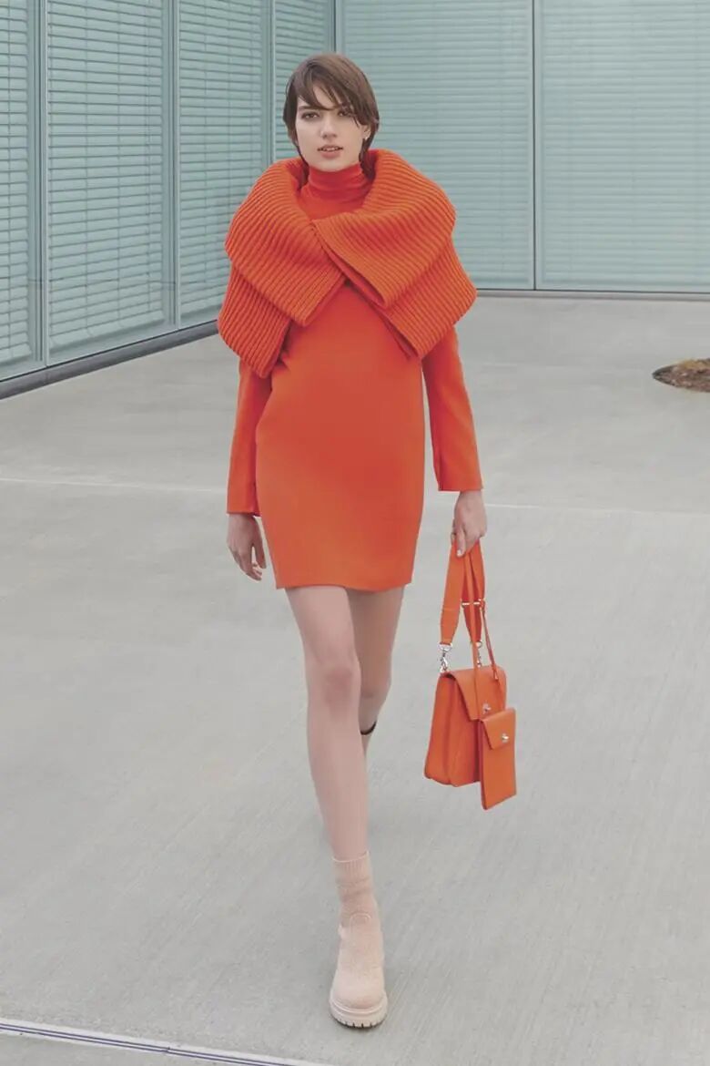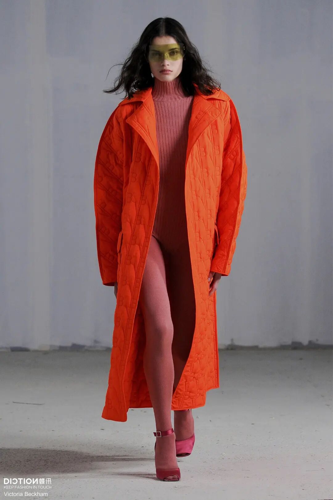 亮琥珀色也是一种非常抓人眼球的高饱和色彩,在本季时装周中不难发现高饱和色彩的复苏趋势,相较于玫瑰紫而言,亮琥珀色色系为暖调,在冬季更容易带来温暖的视觉效果。