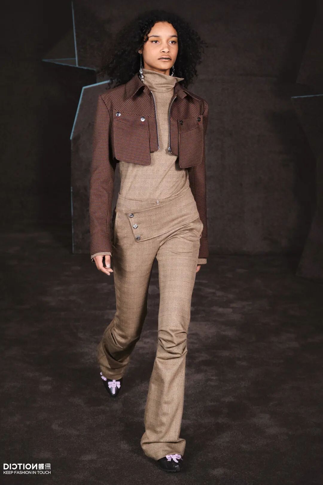 截短式风潮与外套单品相结合,层次叠搭带来的层次感提升使截短式小外套炙手可热,宽大与窄小的趋势总是如影随形,接踵而至,时尚存在于一种平衡。