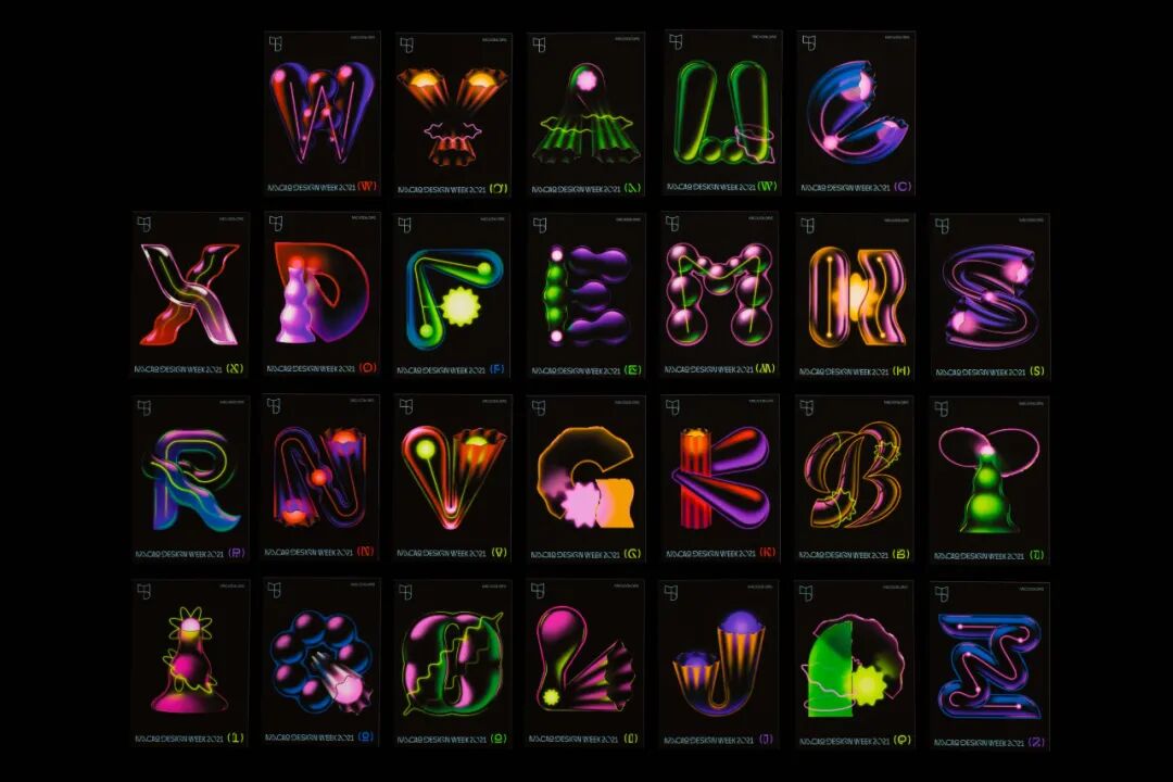 Indego工作室设计了26个风格各异的英文字母,以超现实的手法构建主视觉的设计元素,展现澳门设计的无穷爆发力。这26个字母的单独大文件,需要的朋友请在公众号后台回复“2021澳门设计周”即可获得百度网盘链接(仅供学习研究用)。