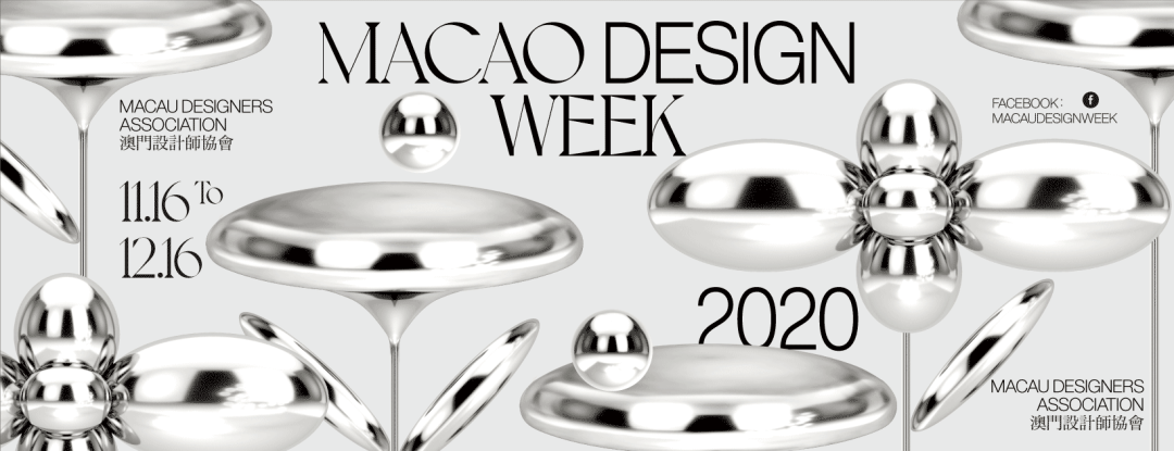 2021澳门设计周,主视觉设计来自澳门本土的 untitled 工作室,主题是“百花齐放”,充满几何味的各种造型的花朵,以镀铬的质感呈献,配合黑白灰的整体色调,给人以宁静而不乏活力的感觉。