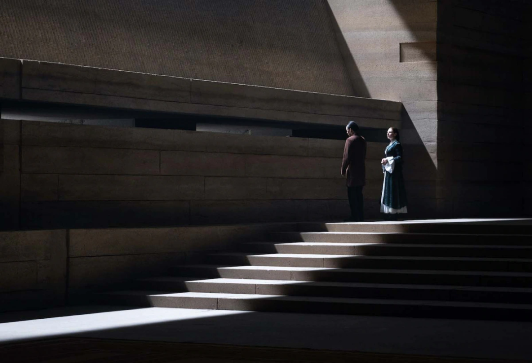 在优美的曲调和舞蹈里,不同场景的转换使电影和建筑融合,就好像是一对共生的艺术产物,通过二维镜头的角度和非线性的剪辑带给观众们一段有着沉浸感的空间体验。