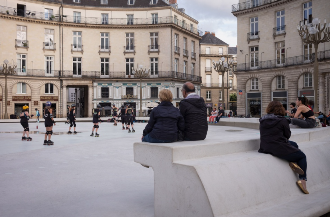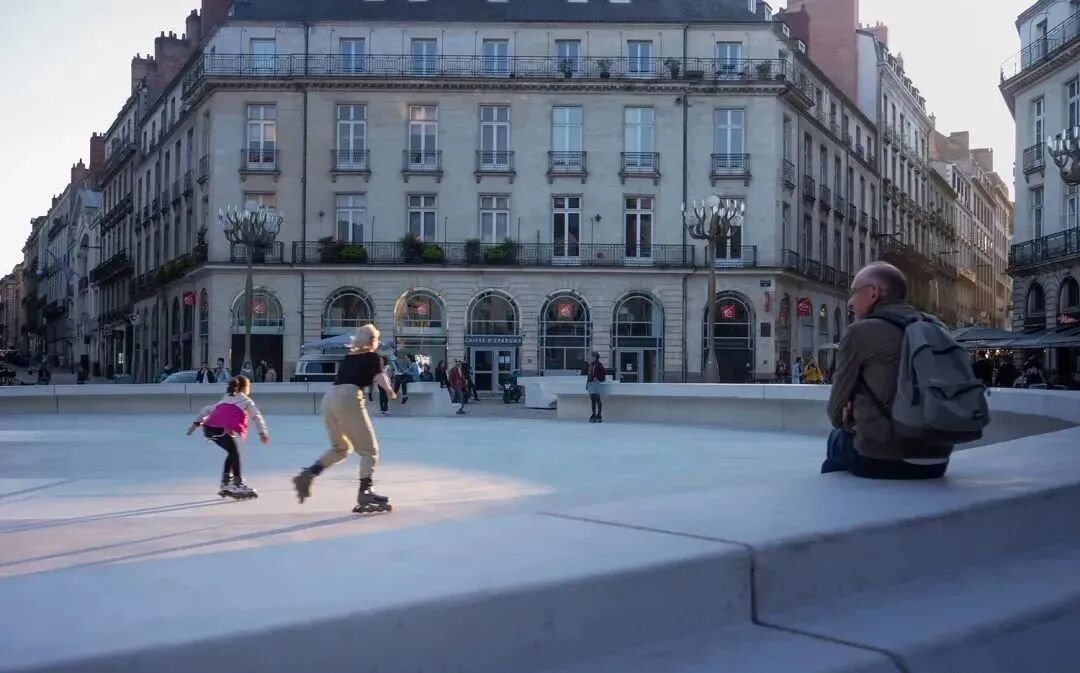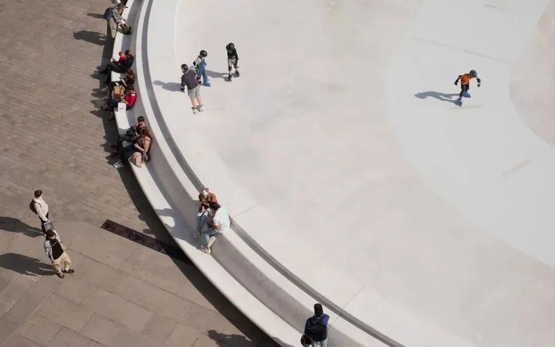 场所的阶梯自然地转变为看台,装置边缘设有长椅,观众可以坐在上面观看露天比赛。