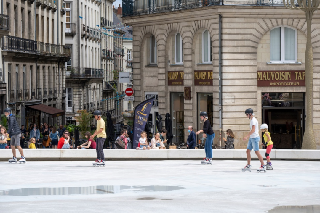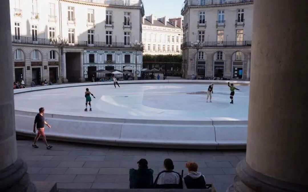临时结构为一座轮滑场,需要适应不规则的场地及其中的自然斜坡,带给广场一种新的中心感,并在几小时中为无拘无束的轮滑活动开放。