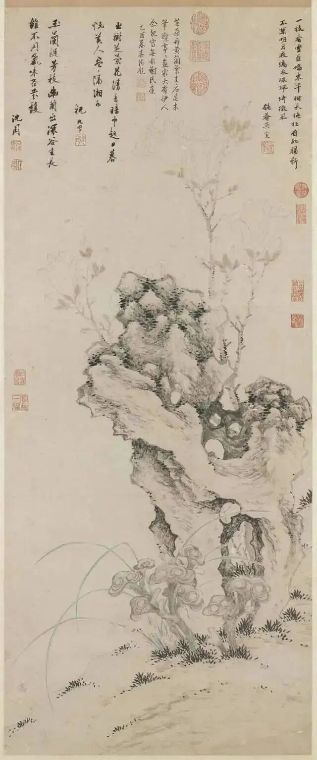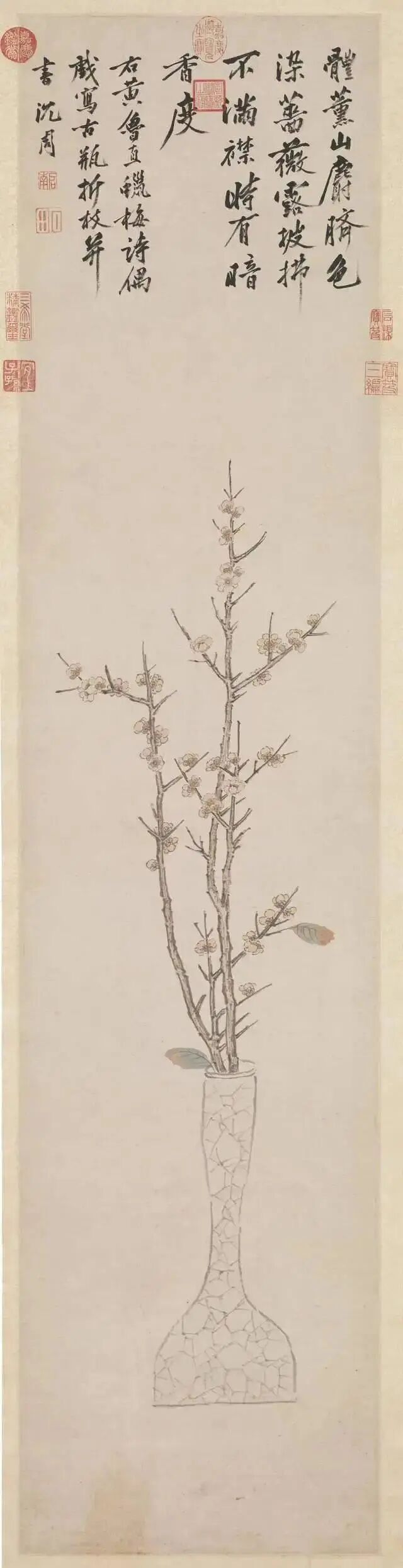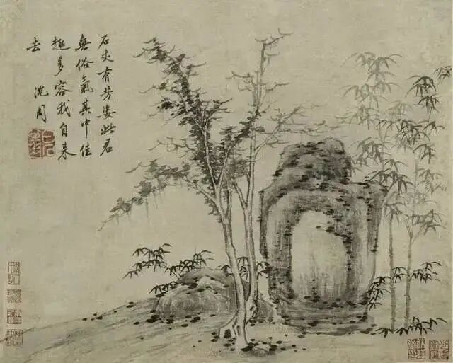 沈周出身富裕的书香绘画世家,少时师从陈宽学习诗文,青年时期师从伯父沈贞,还有刘珏、杜琼、赵同鲁等学习绘画。其一生家居读书,吟诗作画,优游林泉,追求精神上的自由,从未应科举征聘,始终过着田园隐居生活。