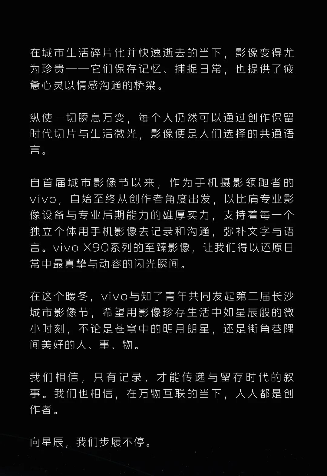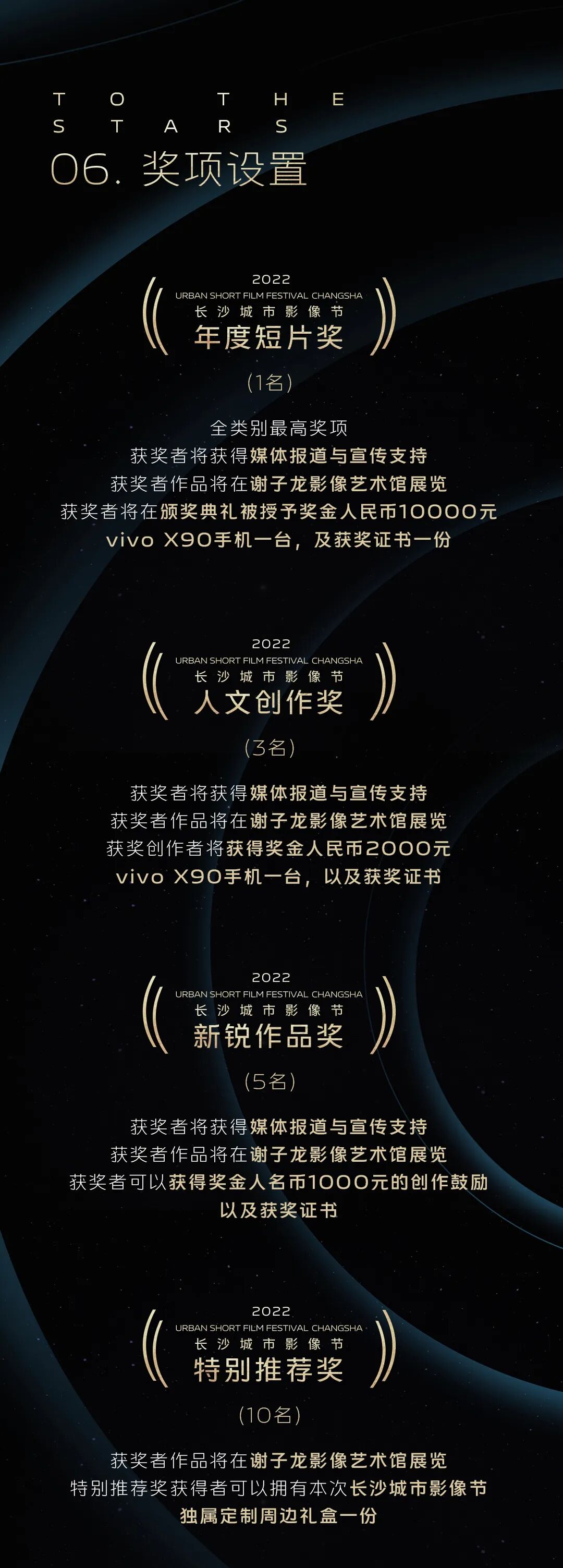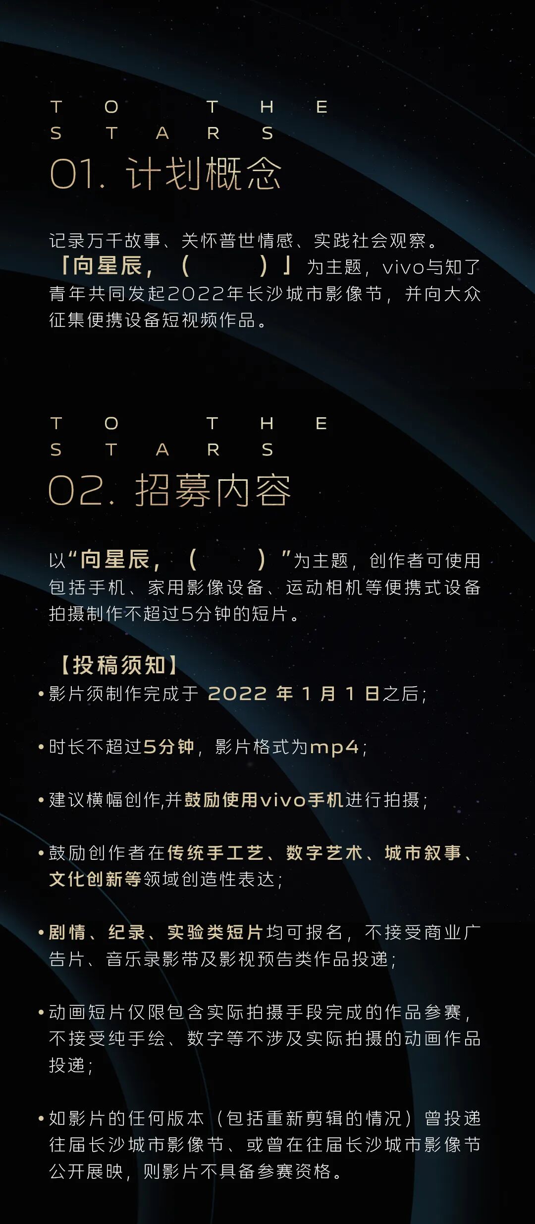 去年首届长沙城市影像节向广大影像创作者发起以“时光”为主题的超短片形式的征集,影像创作者们通过对光影印记的记录,诠释他们关于时光的感悟;今年,第二届长沙城市影像节再次启动,以“向星辰”为主题发起征集,创作者们可使用包括手机、家用影像设备、运动相机等便携式设备拍摄制作不超过5分钟的短片,招募时间截止至12月12日。