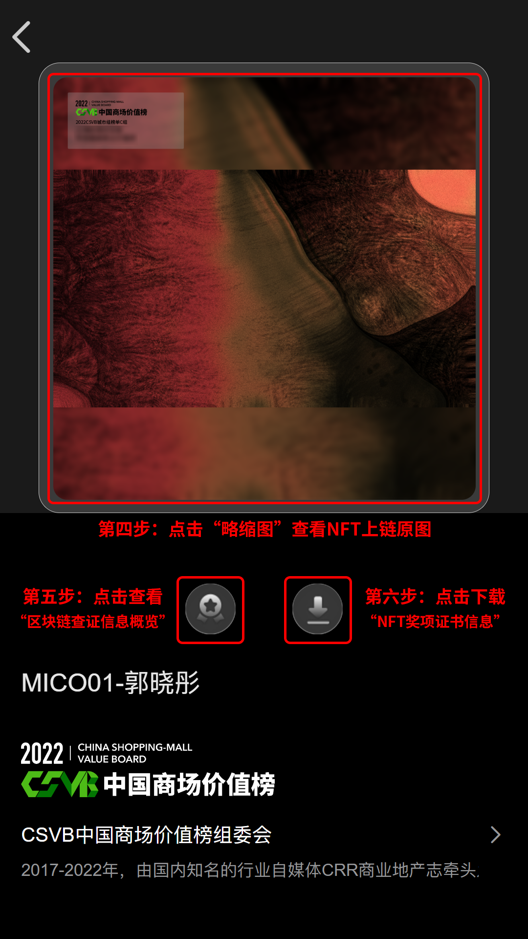 本届CSVB携手先锋艺术机构WOOMOJI签约的5位青年艺术家,联合上海元宇宙艺术机构「STORY」,针对4个城市组别的20个单项奖,共创城市组别的获奖证书,并将在STORY的NFT发售平台「STORY LINE」独家输出,这也是同类奖项中首次推出独一无二的NFT数字藏品证书(*NFT数字藏品证书的详细领取攻略如下👇)