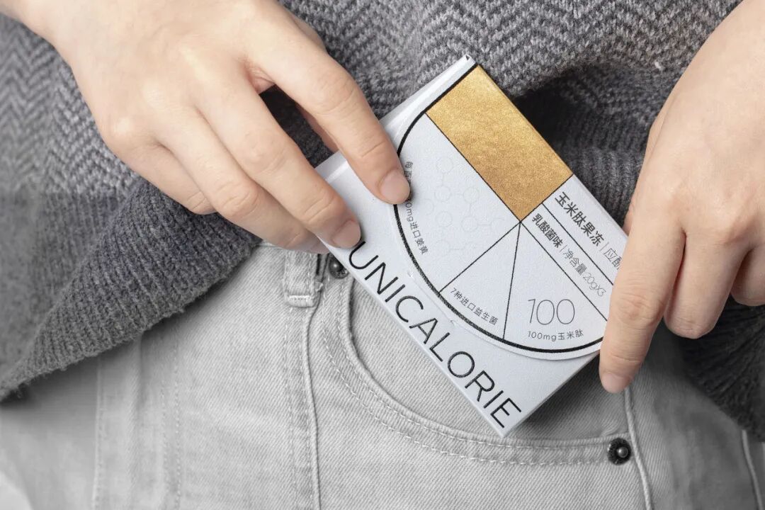 UNICALORIE以“口袋健康”的理念生产科学营养的果冻零食,每种口味都添加了多种营养成分。品牌标志以U和的简单组合设计卡(指卡路里)。“口袋”被用作呼应品牌概念的信息。u成为口袋的轮廓卡变成了结构。