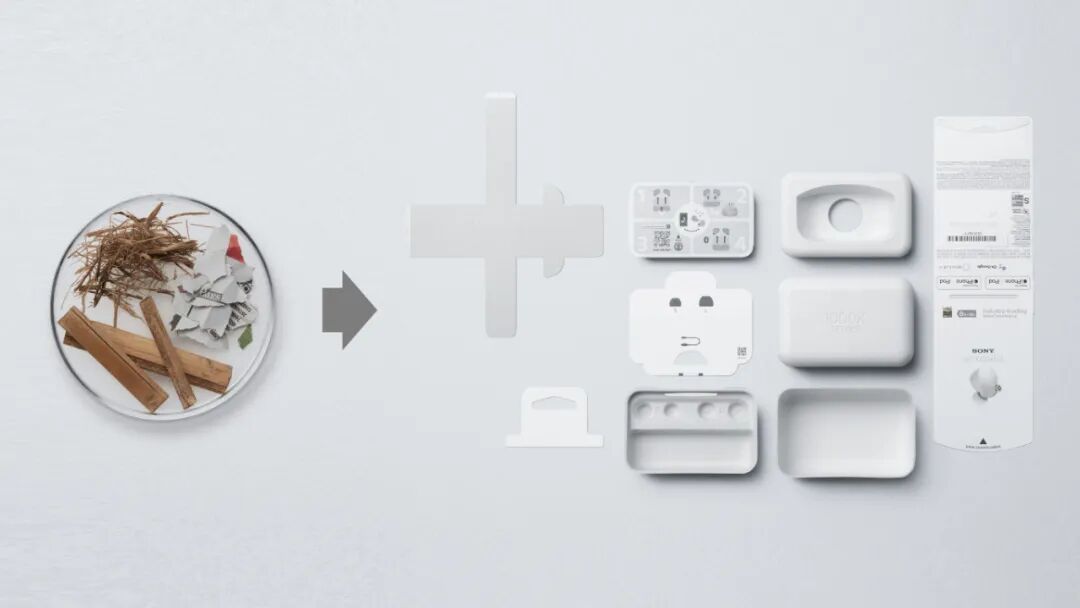 该包装采用“原始混合材料”,这是一种由索尼开发的耐用、可回收的纸质材料。这种材料由竹子、甘蔗纤维和使用后再生纸制成。构成包装的所有组件,从外盒到袖子和靠垫,均仅使用这种原始混合材料制成。