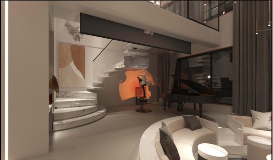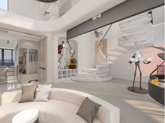 古人讲圆融,通达,追求天人合一的人居理念。本案的设计便以“天人合一”为主题,在营造天人合一的自然气氛里,细致雕琢的每个细节在满足采光充足、色调明亮之外,还运用了流畅的线条对家中每处空间的融合之处进行点缀。工艺的至纯至真,讲求实用,不同的家居设计对应这一“音乐之家”每一位成员的个性追求,展现了居者的个人情绪与自我表达。貌似不经意的搭配之下,一切又如浑然天成般光彩夺目,使人无论何时回到家,总是能领略到家的温馨、激情与浪漫。
