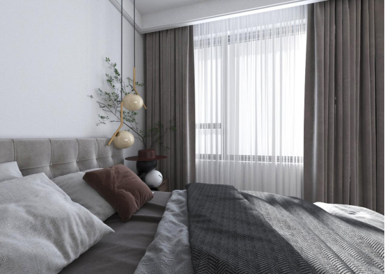 次卧以极简风格出现在我们的视野之中,以灰色调为主旋律,一抹绿色为点缀的房间仿佛在告诉我们精谧生活的本质在于超越现实之上的静谧,细细品味,慢慢休憩,积蓄停歇之力,为更好出发修整身心。