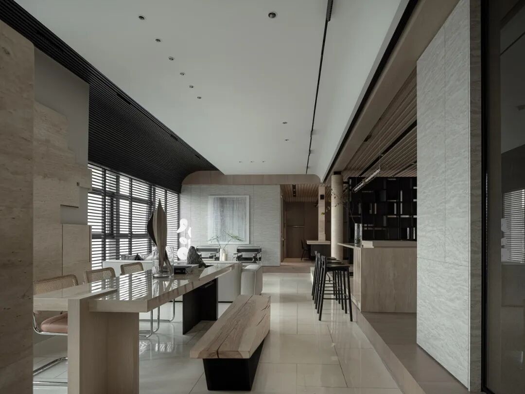 将建筑的思维方式融入室内空间设计,在设计中体现事物真实的状态,以理性的思维去发掘场所的特质,追求简约且具有叙事性的空间状态。