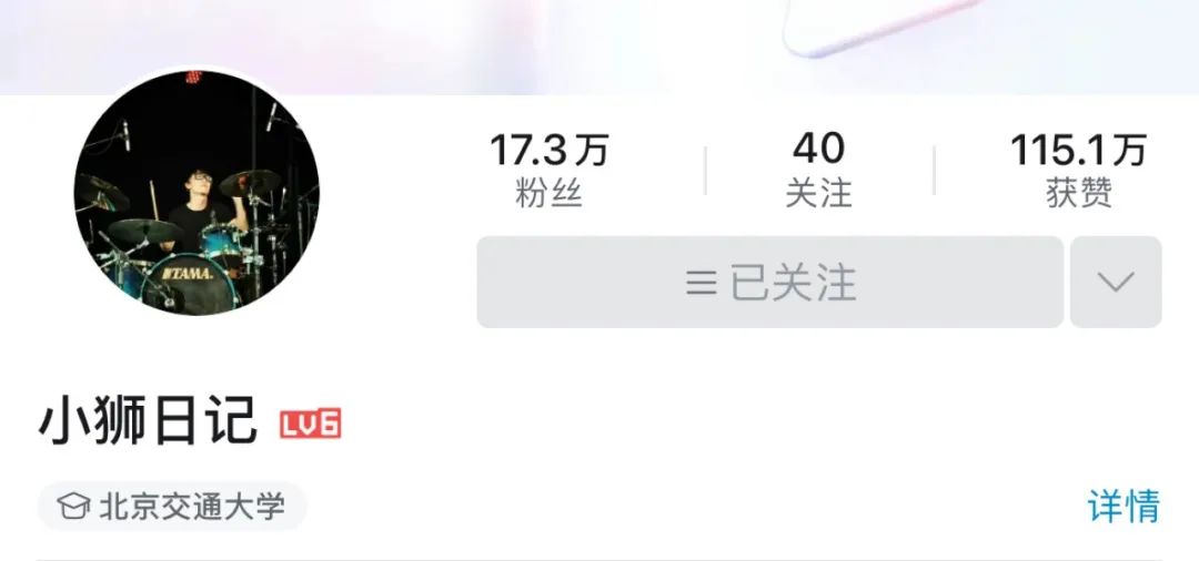 小狮曾经是一名鼓手,大学期间和朋友组建了“沉迷乐队”。