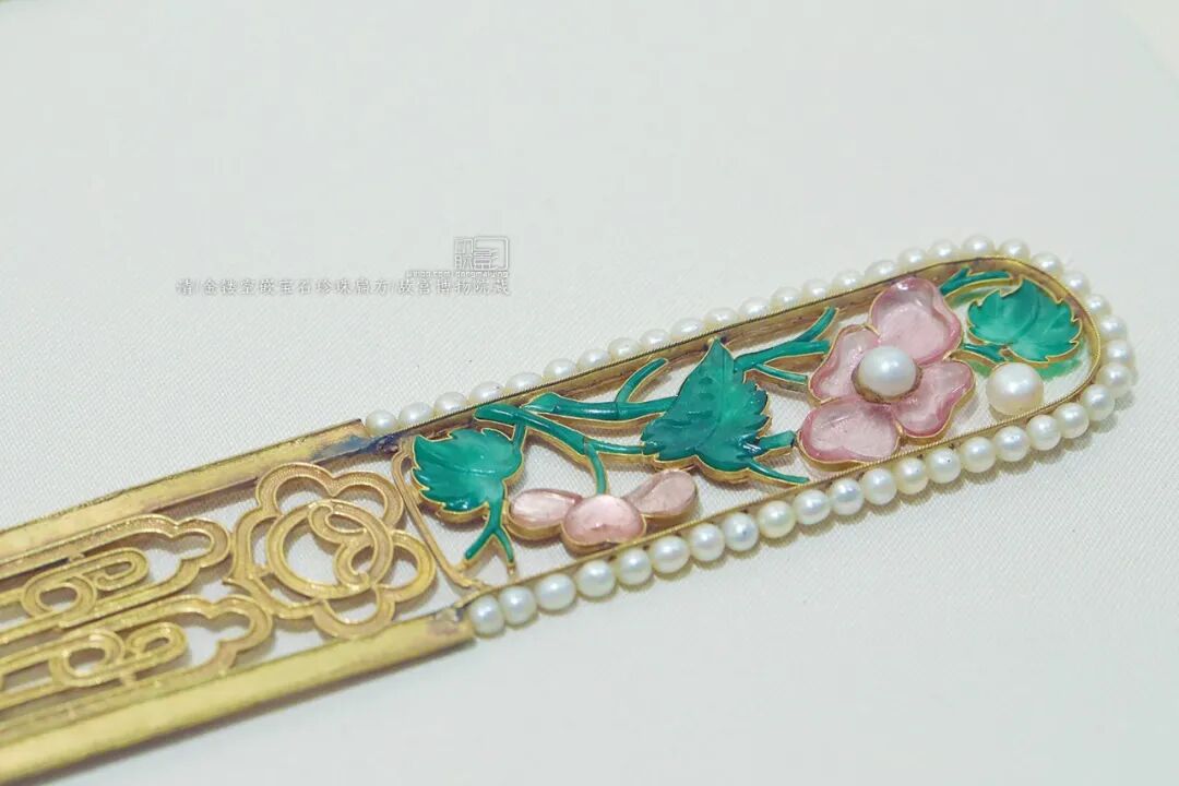 ● 清/金镂空嵌宝石珍珠扁方/故宫博物院藏