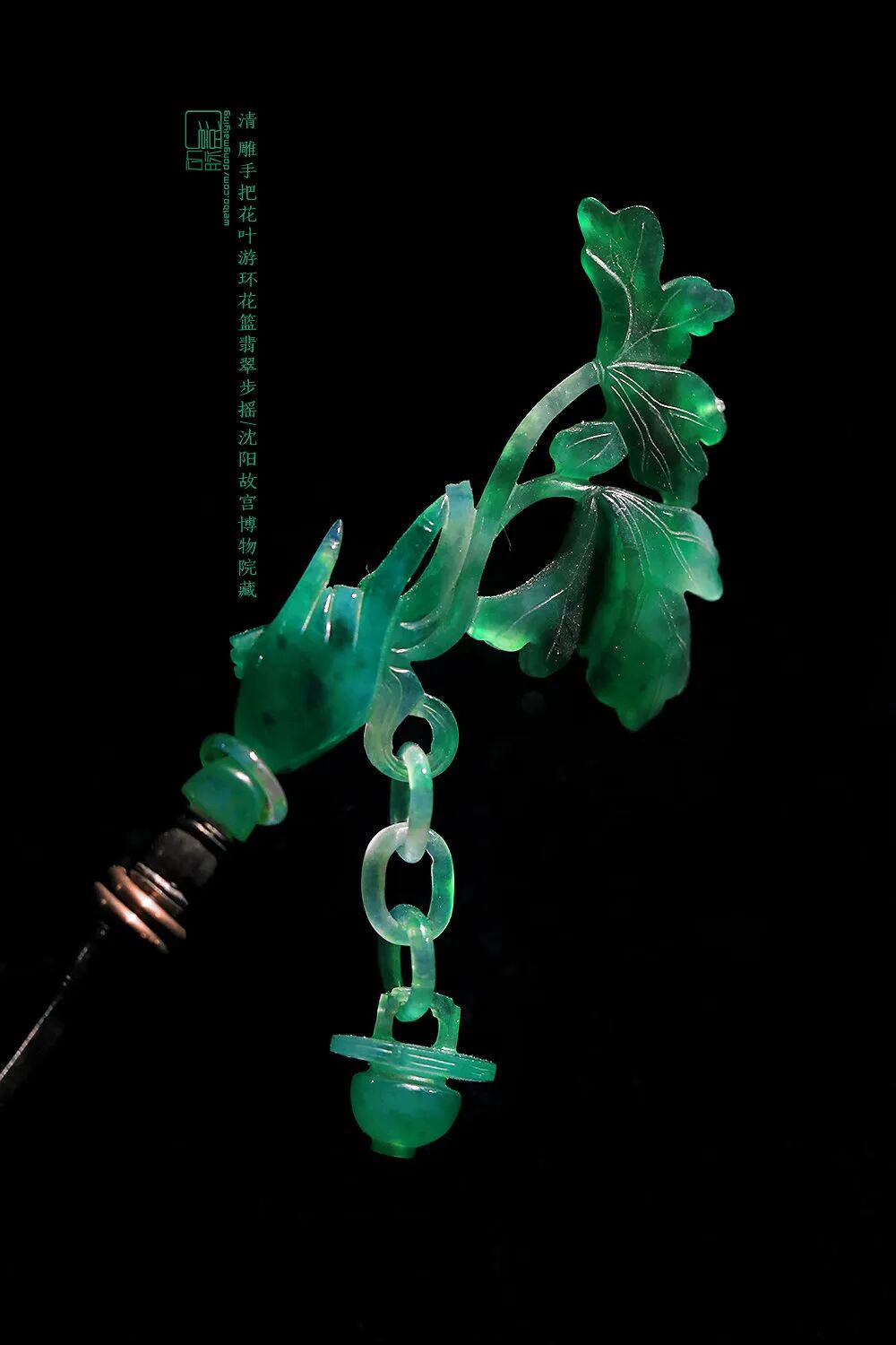 ● 清/雕兽把花叶游环花篮翡翠步摇/沈阳故宫博物院藏