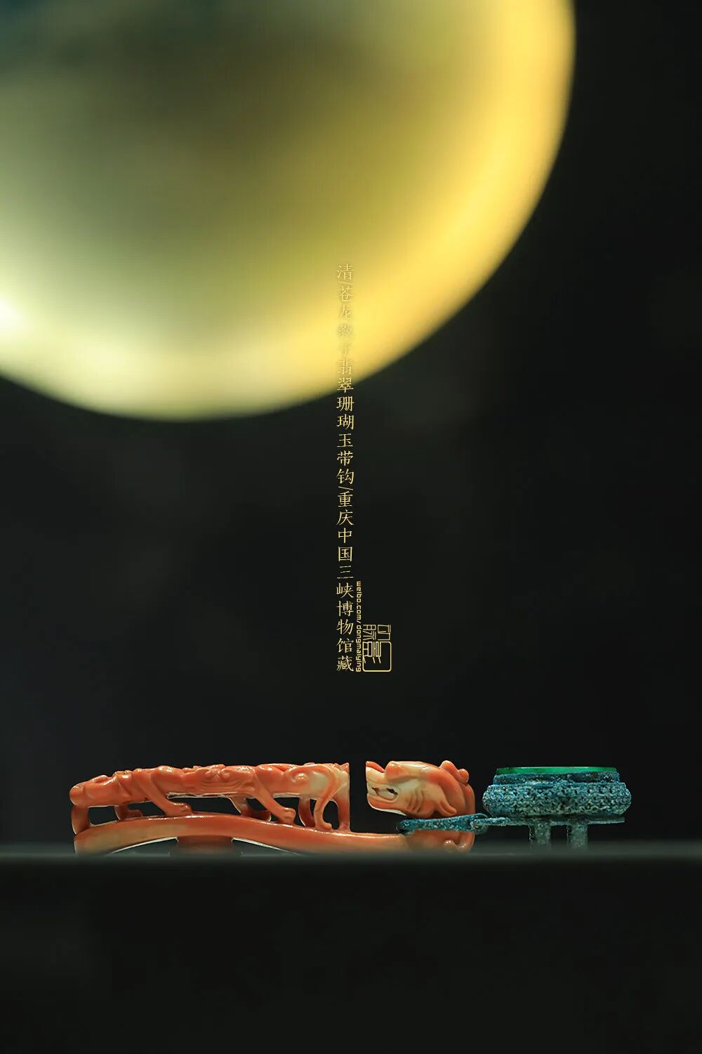 ● 清苍龙教子翡翠珊瑚玉带钩/重庆中国三峡博物馆藏