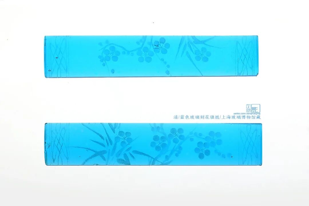 ● 清/蓝色玻璃刻花镇纸/上海玻璃博物馆藏
