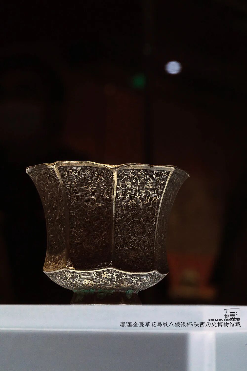 ● 唐/鎏金蔓草花鸟纹八棱银杯/陕西历史博物馆藏