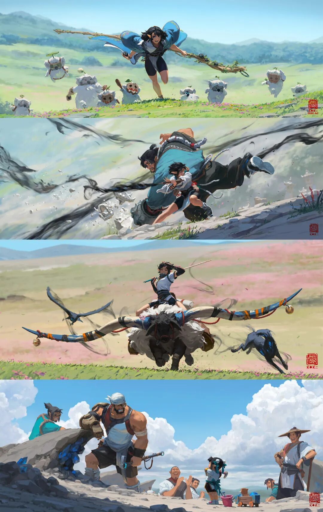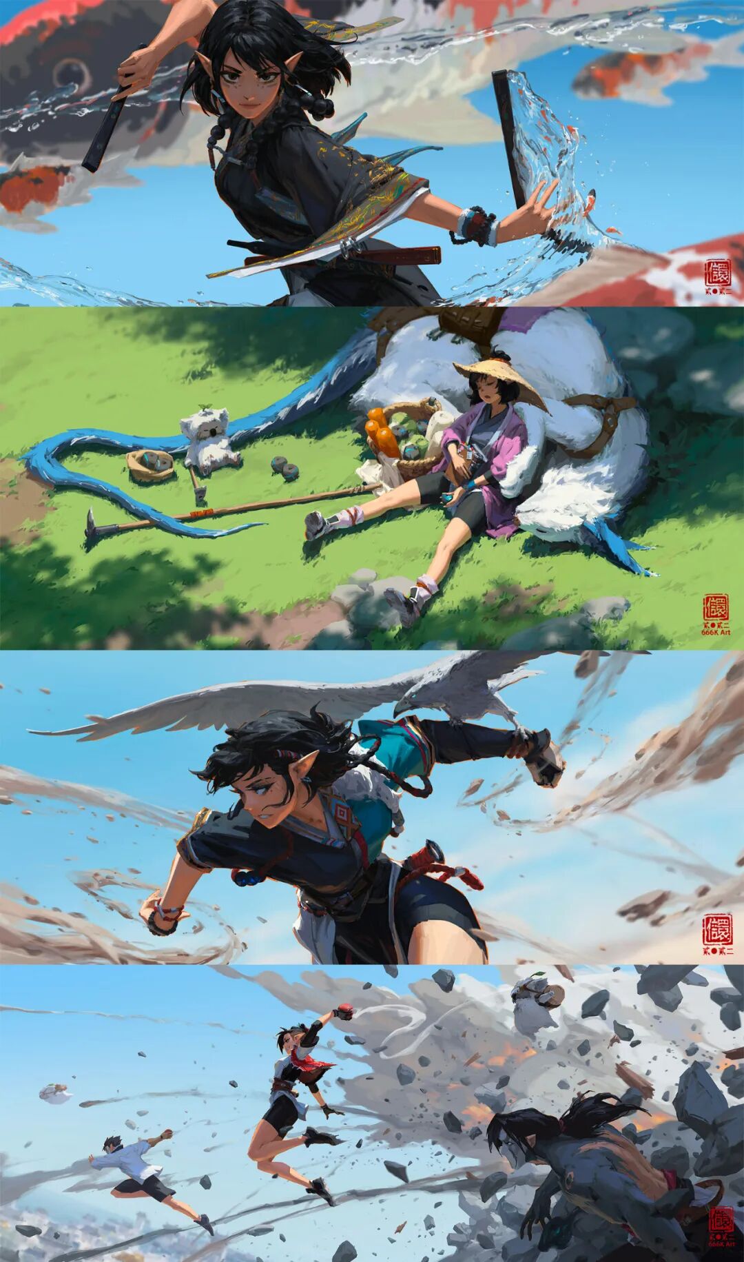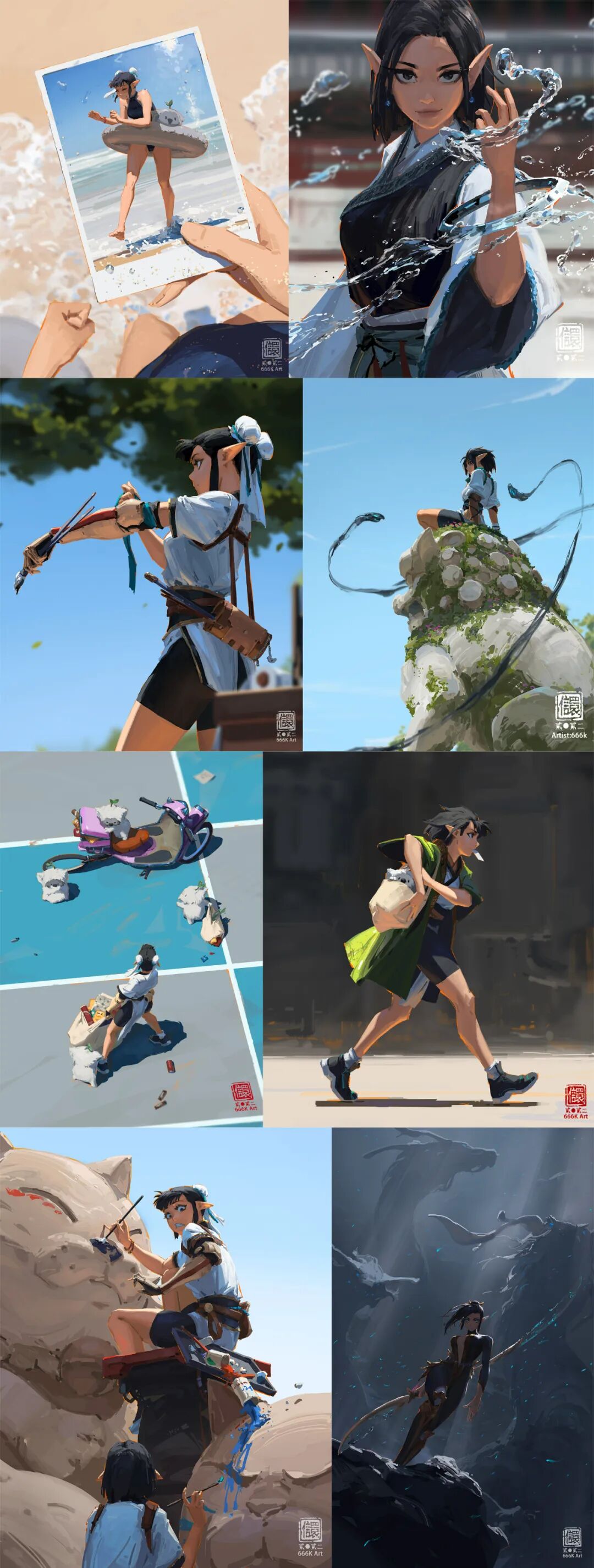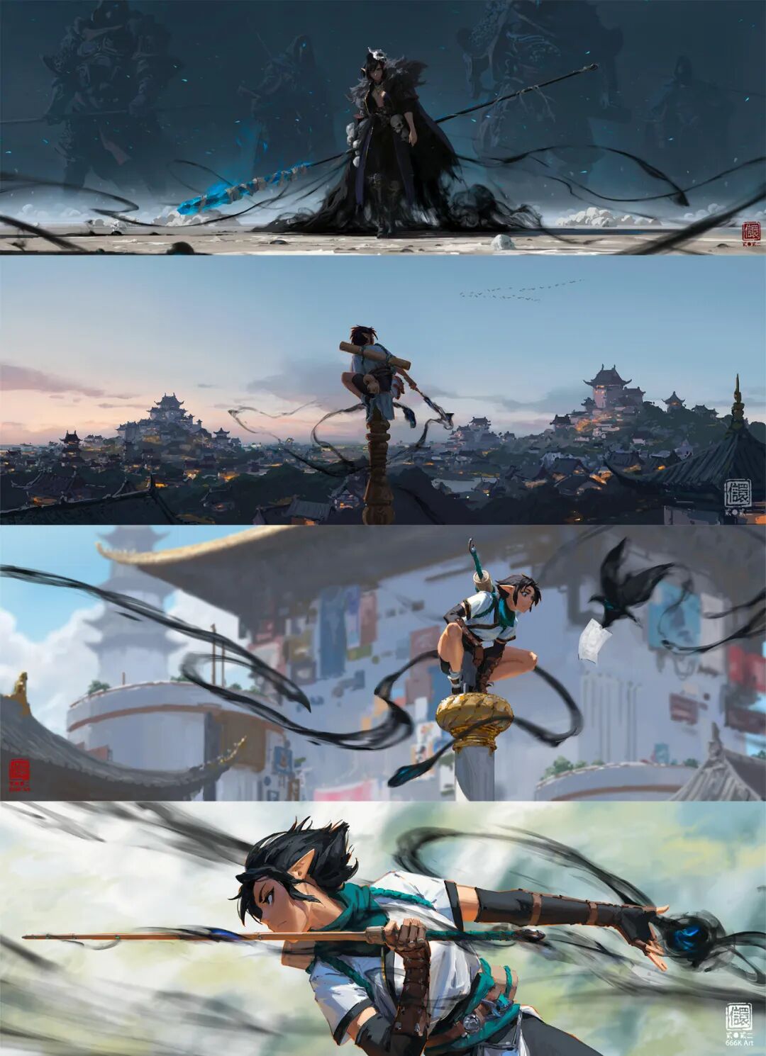 666K信譞:差不多,我觉得对我来说是兴奋剂,其实我的工作还是以管理为主,包括给反馈之类的,其实没太多机会画画,所以如果我自己也不画的话,可能要疯。工作能让我保持在行业内的高竞争力,因为在拳头能一直接触到比较前沿的工作内容和项目;自己的创作能让自己不会因为管理而荒废了专业技术。没有足够的专业技术,我也没法给大家很好的反馈或者做改图,二者互相成就。