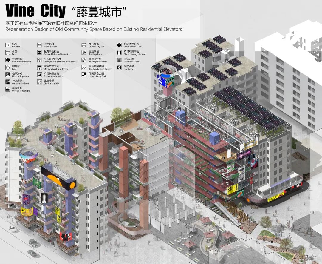 作品名称:《“藤蔓城市”——既有住宅增梯下的空间再生设计》