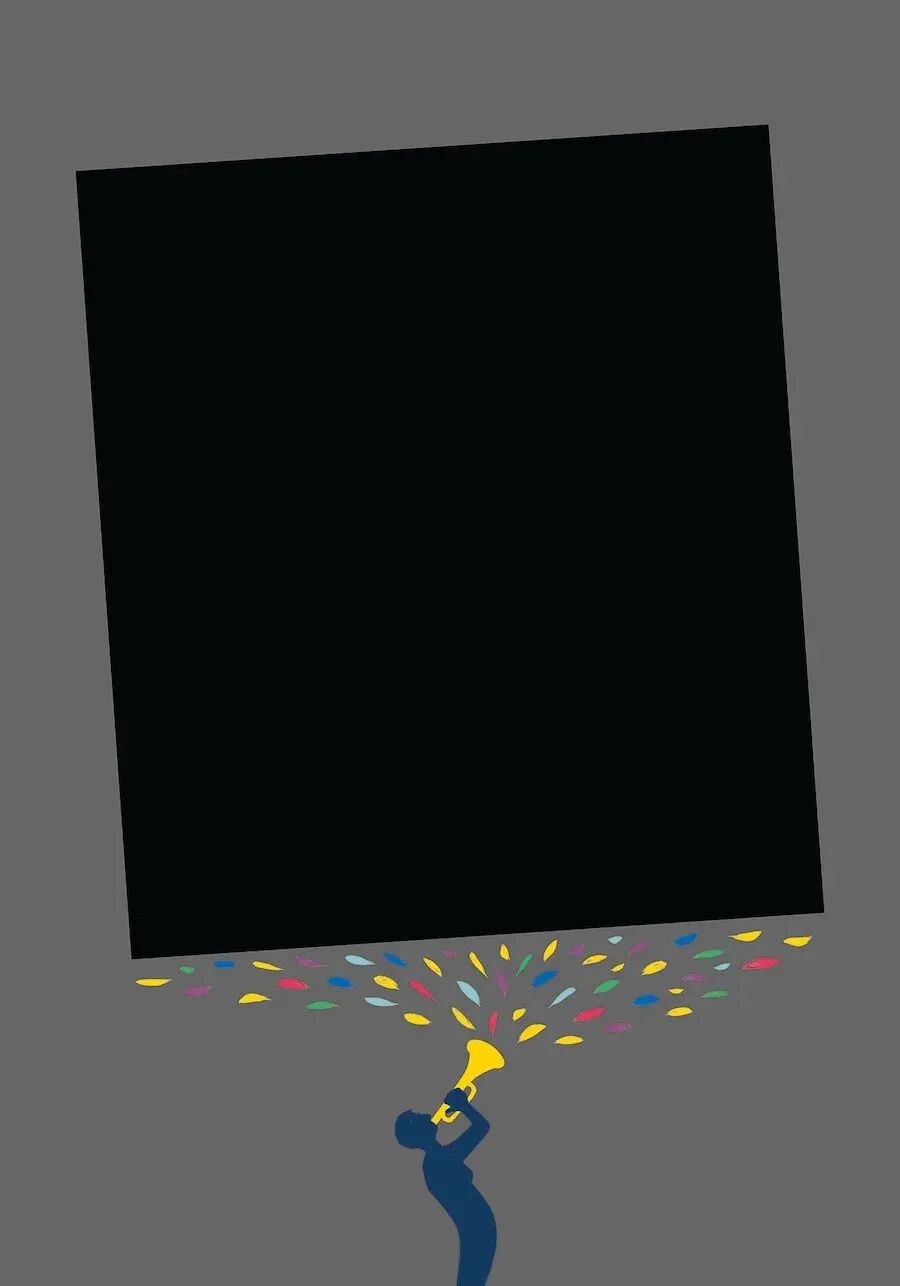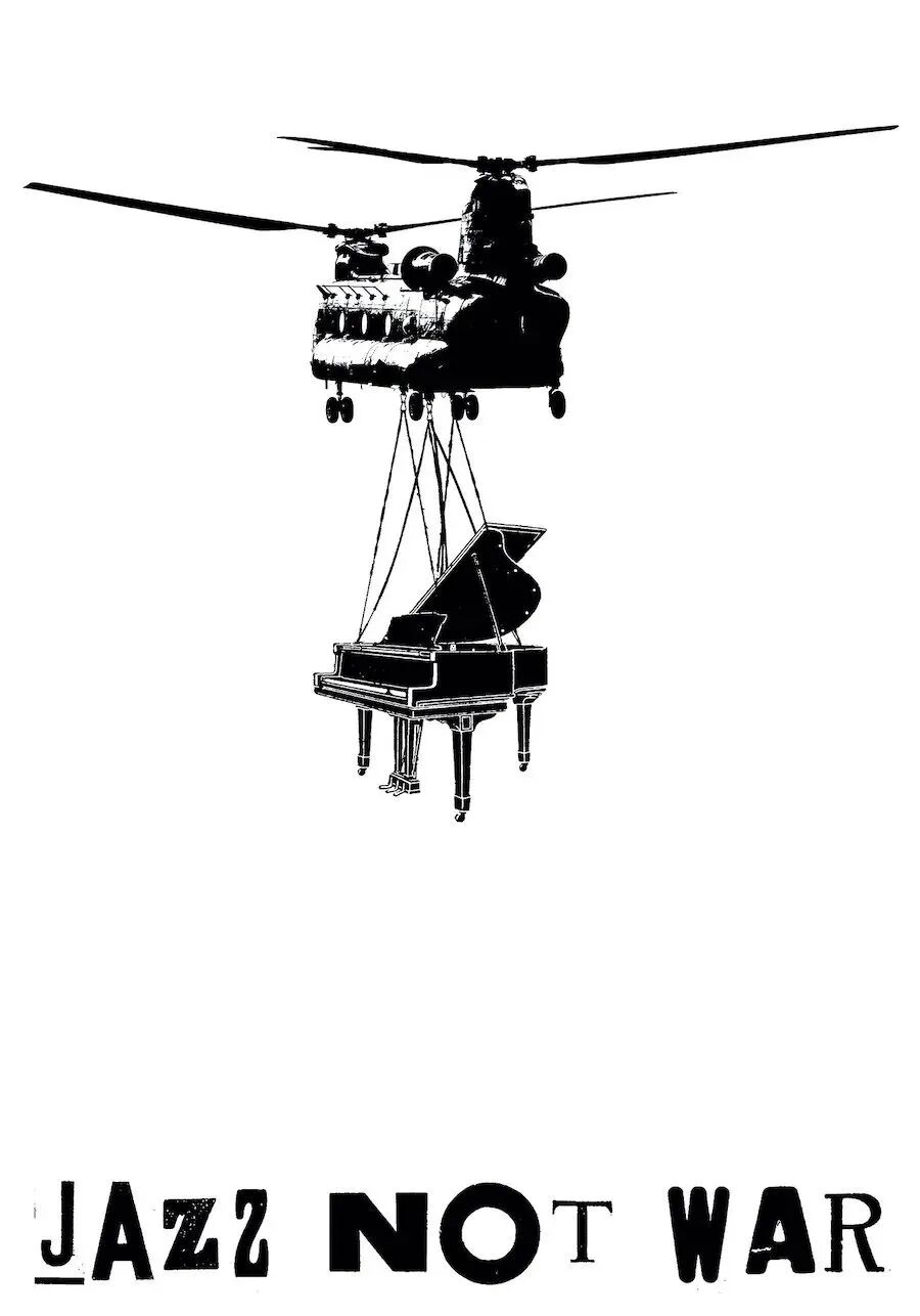 一个是画面里的爵士乐元素和精神的呈现,一眼看上去得是视觉中心或主体;二个是残酷战争的场景或美好意象表达,从而突出爵士乐的可贵;三个是爵士乐和战争必须巧妙地融合在一起,让整幅画面是一个整体。