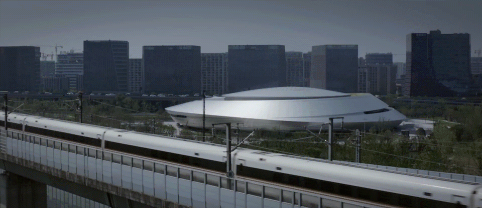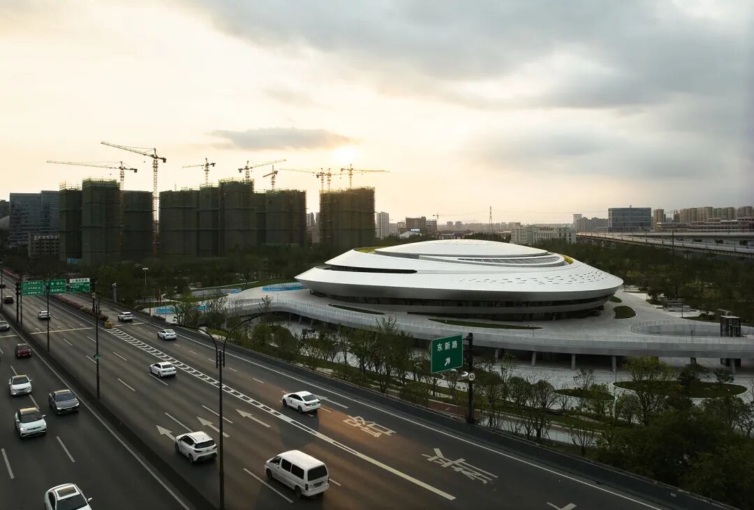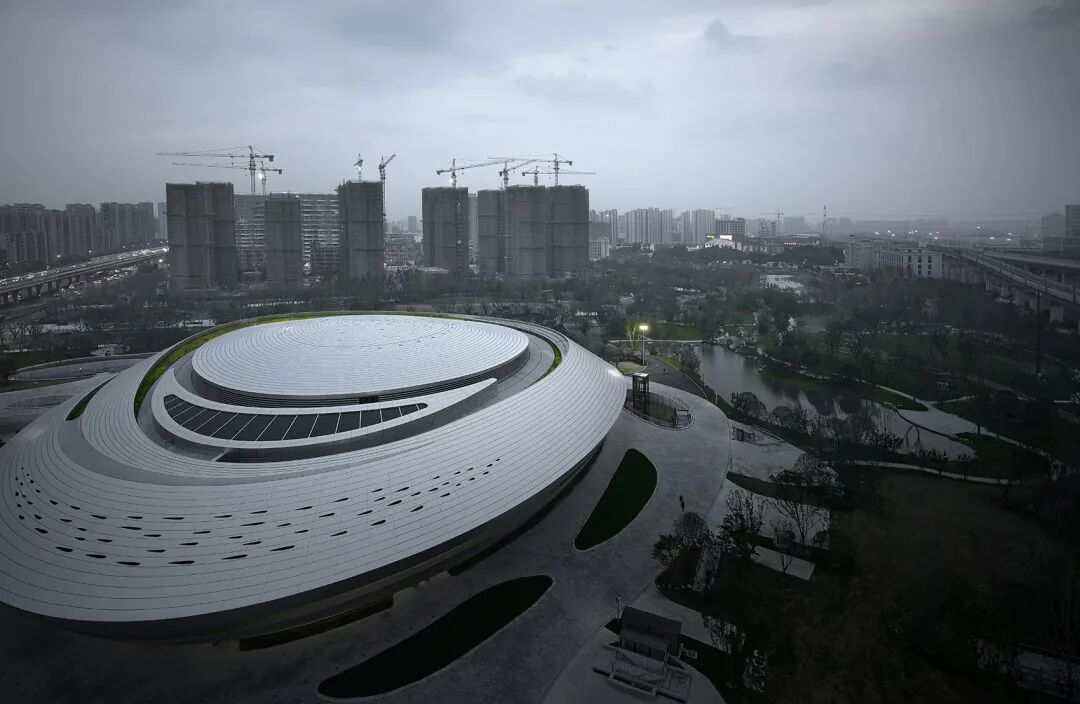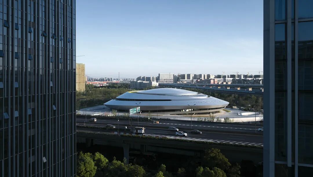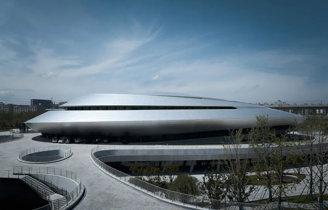 ▲动感流畅的银色建筑犹如时空穿梭中的“星际战舰” © 奥观建筑视觉