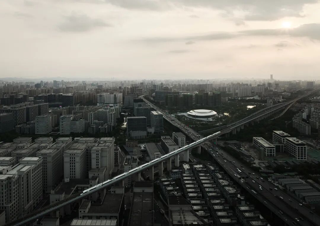 ▲高架快速路一侧鸟瞰 © 奥观建筑视觉