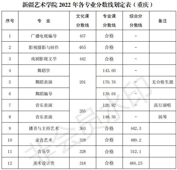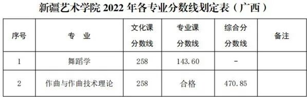 广西艺术学院2022年艺术类专业录取文化最低控制线、录取排序最低分