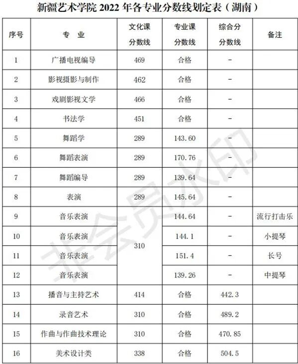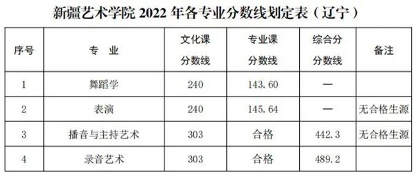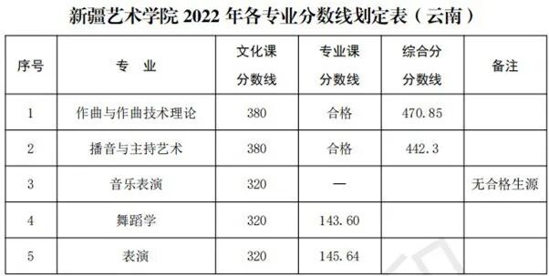 云南艺术学院2022年艺术类专业高考文化课成绩录取控制分数线(适用于云南省考生)